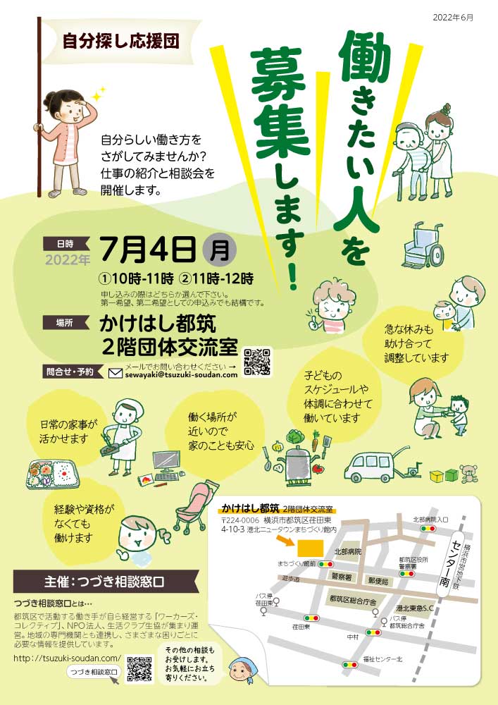 自分らしく働きたい!資格がないけど大丈夫かな?など、相談しながら自分らしい働き方をさがしてみませんか?